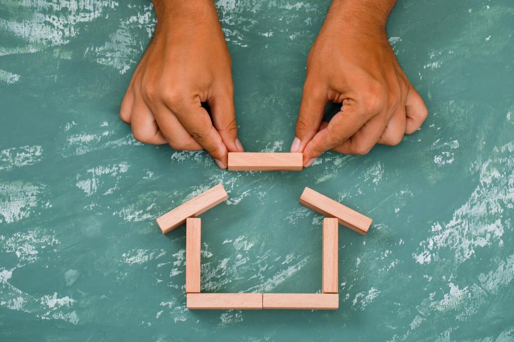 Wähle Materialien, die wiederverwendbar, recycelbar oder biologisch abbaubar sind. Reparierbare Details und reversible Befestigungen erleichtern Rückbau. So bleibt dein Gebäude nicht nur effizient, sondern auch zukunftssicher und kreislauffähig.